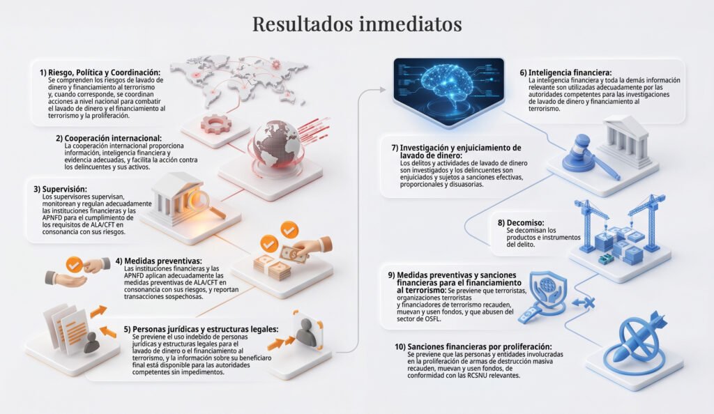En términos formales, el GAFI mantiene su doble lógica de evaluación: cumplimiento técnico, basado en las 40 recomendaciones, y efectividad, medida a través de 11 resultados inmediatos2. Pero en la práctica, el peso se ha movido.
